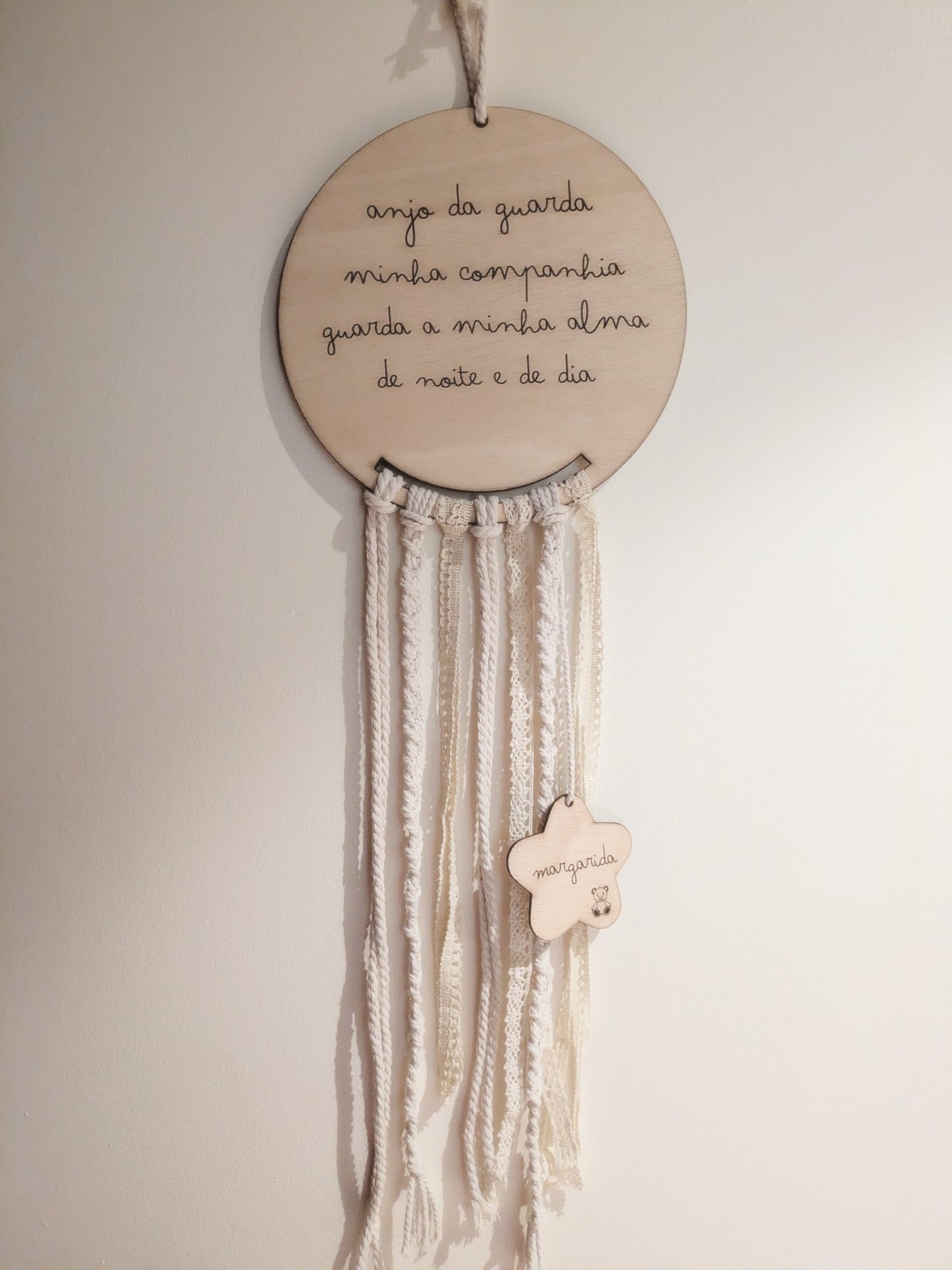Caça sonhos com macramé e estrela em madeira com nome editável.