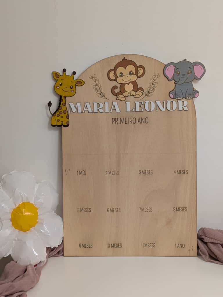 + Portes ao fazer checkoutQuadro 1 Ano com Apliques animais da selva